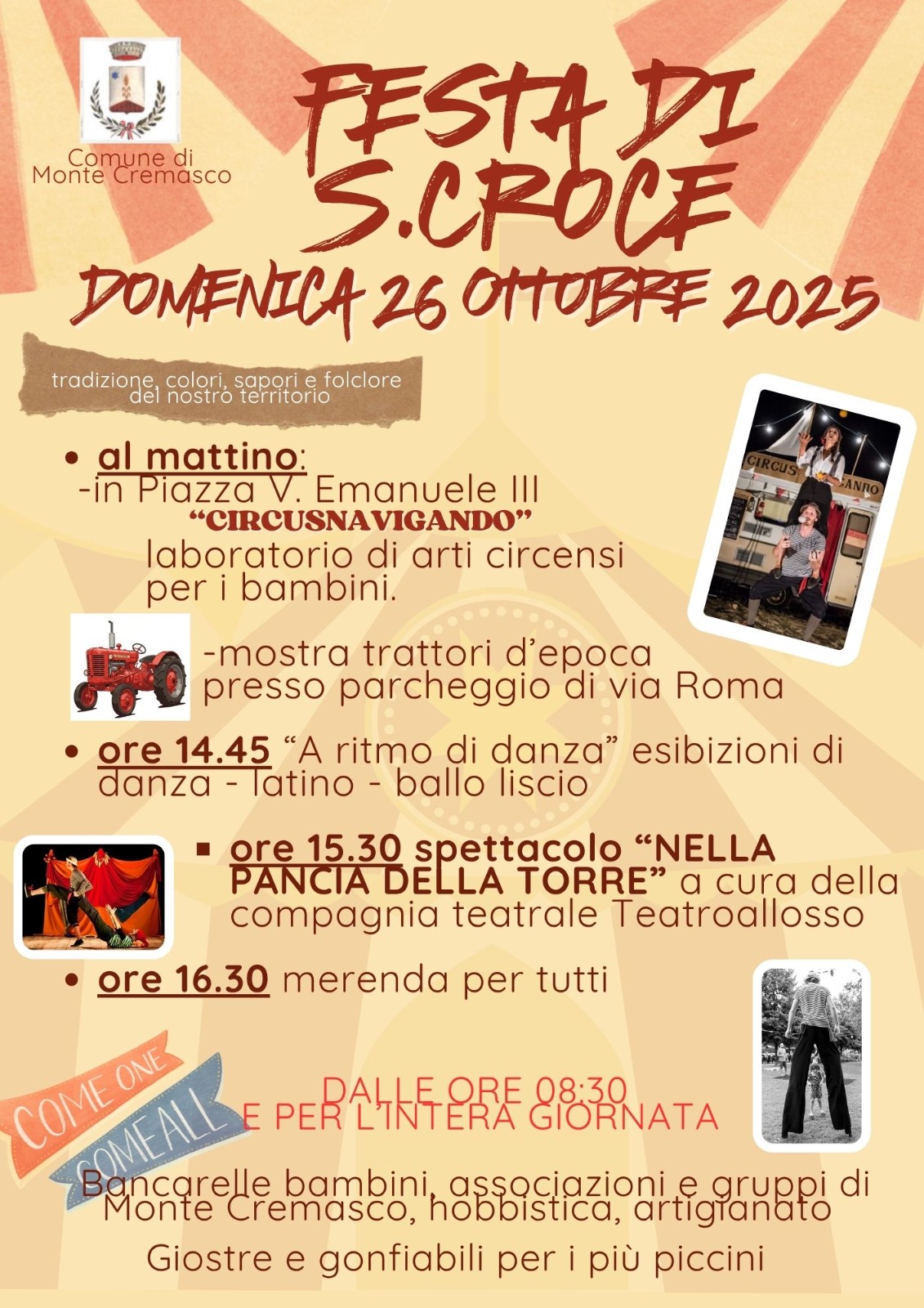l Comune di Monte Cremasco è lieto di annunciare il ritorno della tradizionale FESTA DI S. CROCE che si terrà DOMENICA 26 OTTOBRE 2025.